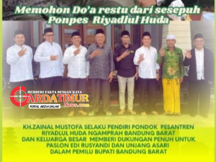 GARDATIMURNEWS.COM |BANDUNG BARAT –Calon Bupati Bandung Barat nomor urut 4 Edi Rusyandi terus melakukan safari politik kepada para tokoh agama yang terlibat dalam pendirian Kabupaten Bandung Barat (KBB). Salah satunya ke Pondok Pesantren Riyadlul Huda, Kecamatan Ngamprah pada Jumat (1/11/2024).
