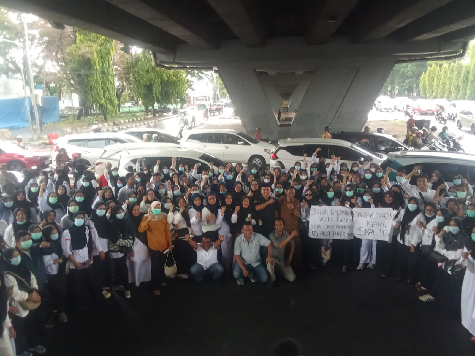 “Aspirasi teman-teman tenaga kesehatan akan kami tampung dan teruskan sesuai mekanisme. Tapi semua butuh data yang valid agar bisa diselesaikan secara faktual,” ujarnya.