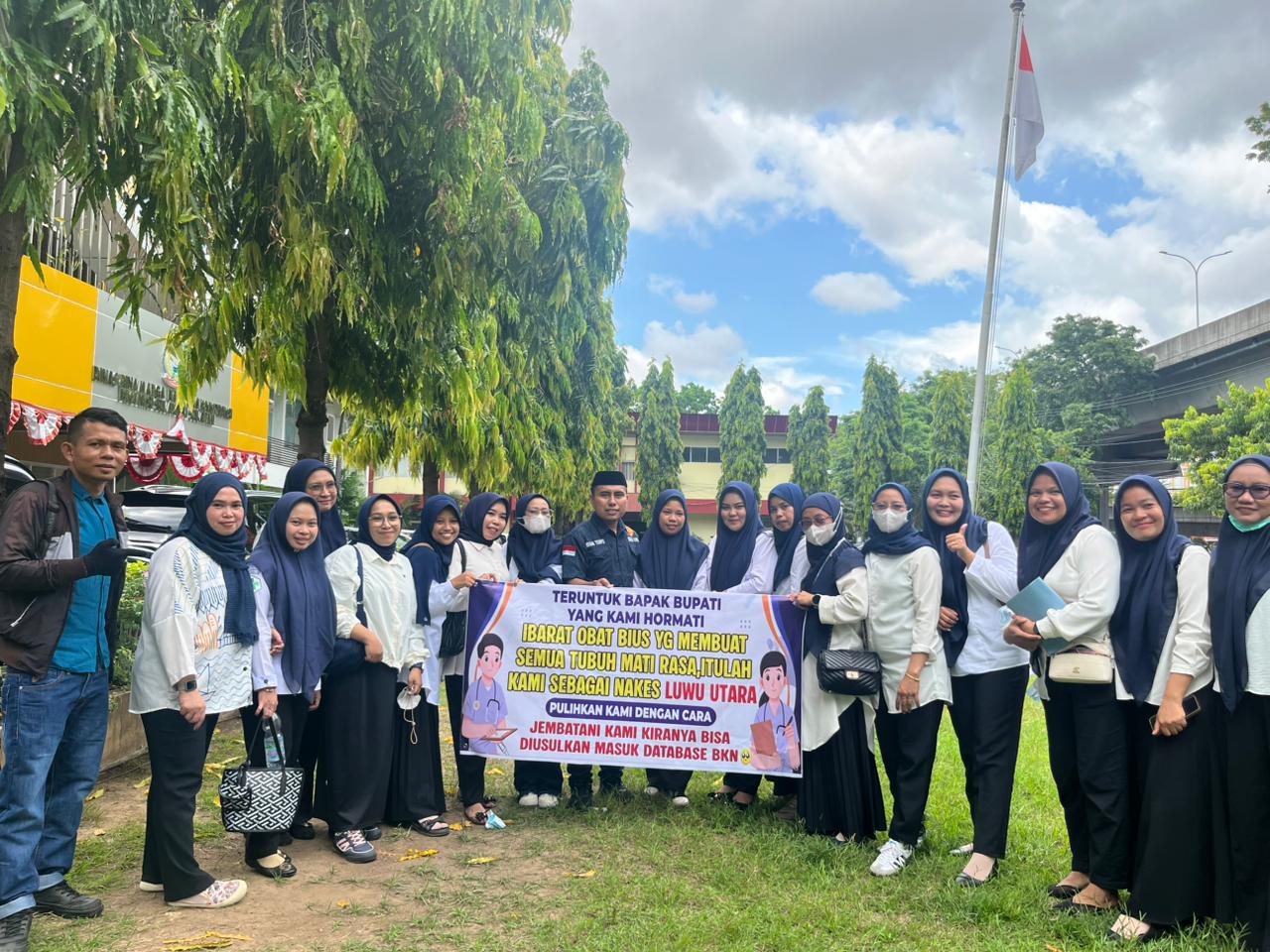 Salah satu perwakilan tenaga kesehatan asal Luwu Utara, Andi Astrini, menyampaikan kekecewaannya karena banyak nakes di daerahnya tidak terdata dalam sistem BKN.