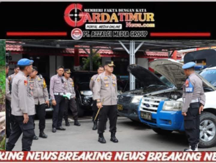 GARDATIMURNEWS.COM || Gowa-Kapolres Gowa AKBP R.T.S.Simanjuntak.S.H.S.I.K.M.M.M.I.k, memimpin pengecekan terhadap kendaraan dinas Polres Gowa, dalam pemeriksaan terhadap kendaraan dinas roda empat, dan roda dua ini Kapolres Gowa didampingi oleh para Kabag dan para Kasat.Senin,(4/12/2023)