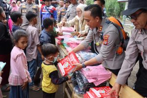 Adapun bantuan yang disalurkan meliputi perlengkapan alat tulis, baju kaos, susu, beras, mi instan, serta bingkisan Polri. Bantuan tersebut diharapkan dapat meringankan beban masyarakat pengungsi sekaligus memberikan dukungan moril agar tetap kuat dan tabah dalam menghadapi masa pemulihan pascabencana.