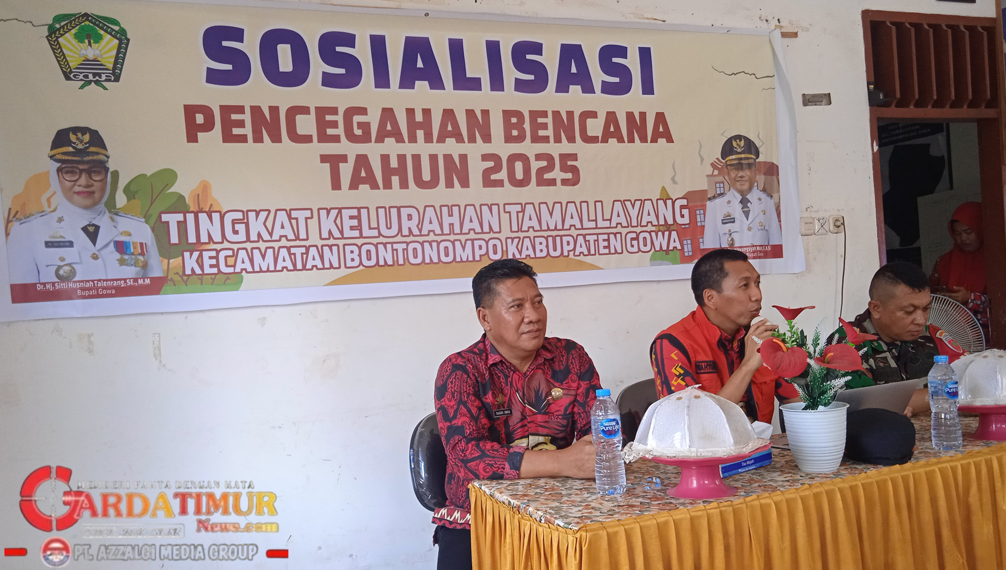 GARDATIMURNEWS.COM || GOWA-Pelaksanaan Sosialisasi Pencegahan Bencana Tingkat Kelurahan Tamallayang Kecamatan Bontonompo,Kamis (18/12/2025) dibuka secara langsung oleh Camat Bontonompo, H Muh Syahrir Salam, S.Ag.,MM. Dalam sambutannya Camat Bontonompo menghimbau kepada lapisan Masyarakat Kelurahan Tamallayang pada Khususnya sebagai Ibu Kota Kecamatan dan Umumnya kepada Masyarakat Kecamatan Bontonompo agar dapat senantiasa memperhatikan adanya tumpukan sampah yang berdampak menyumbat saluran air dan dapat mengakibatkan banjir, termasuk perhatian kepada lapisan masyarakat yang memiliki pohon terlalu rindang dan lebat supaya segera di pangkas untuk menghindari rubuhnya pohon tersebut karena dampak angin kencang dalam musim hujan seperti saat ini.