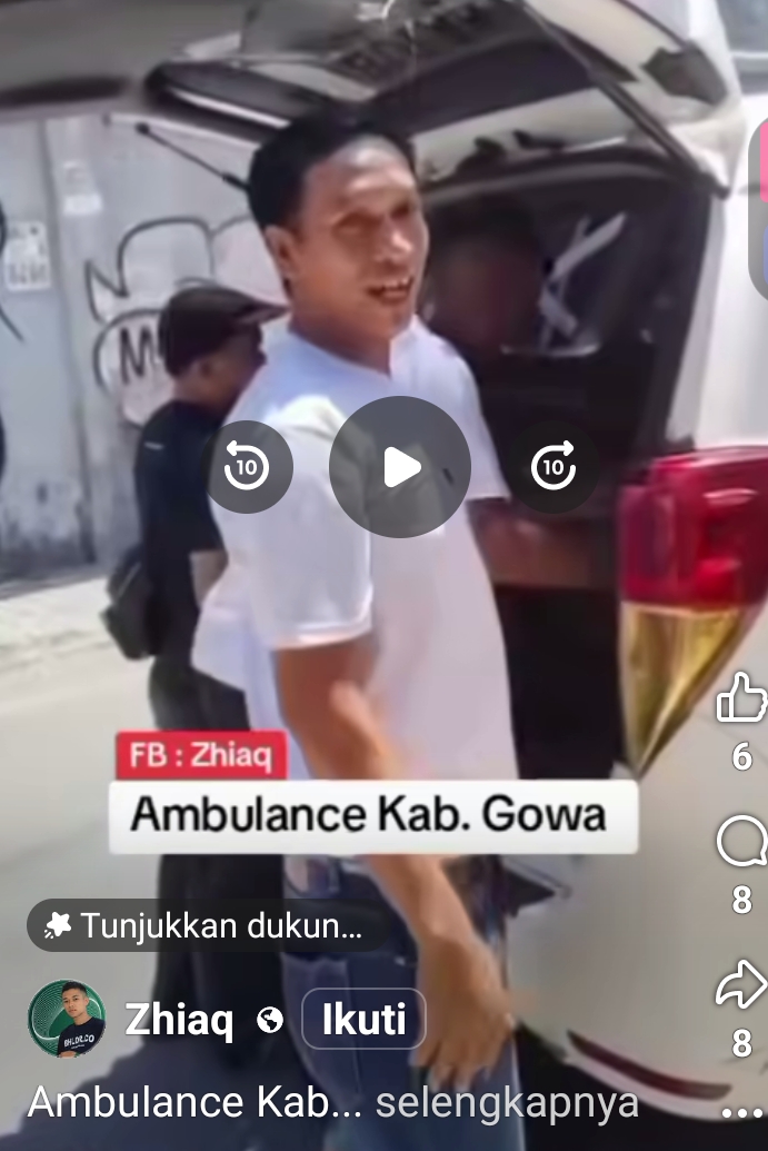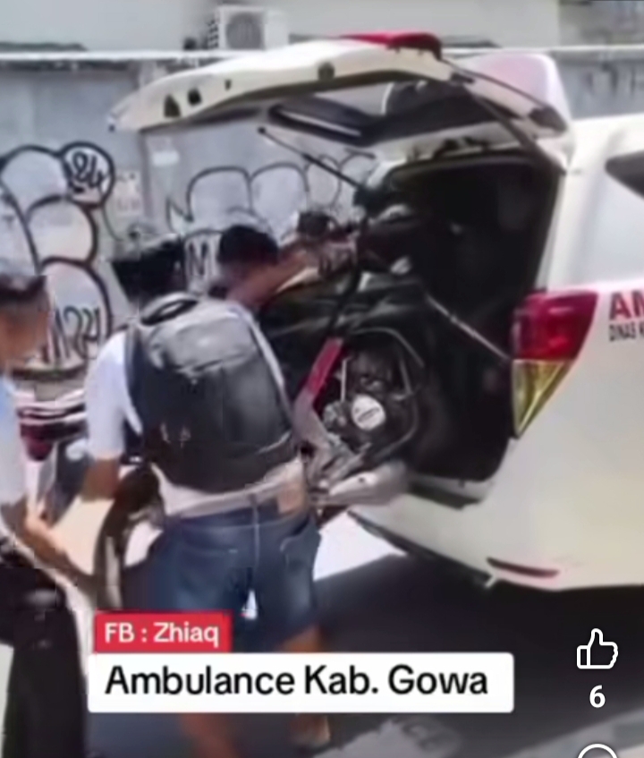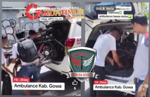 GARDATIMURNEWS.COM | GOWA – Jagat maya kembali dihebohkan oleh video viral yang diunggah akun Facebook bernama Zhiaq, memperlihatkan mobil ambulans milik Dinas Kesehatan Kabupaten Gowa digunakan untuk mengangkut satu unit sepeda motor.